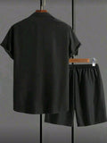 Men's Casual 2-Piece Outfit Set, Breathable Men's Button-Down Shirt and Drawstring Shorts for Summer Casual Wear