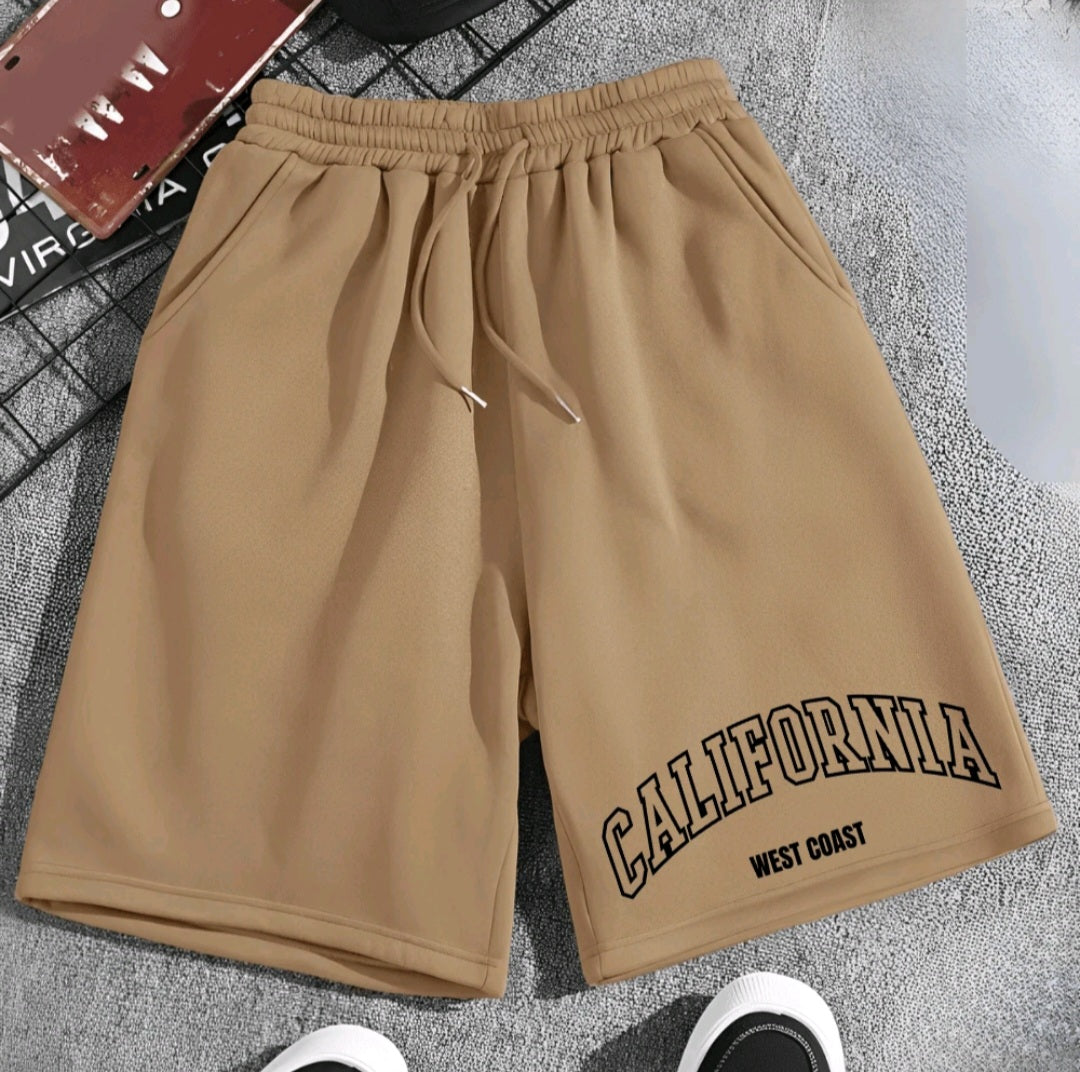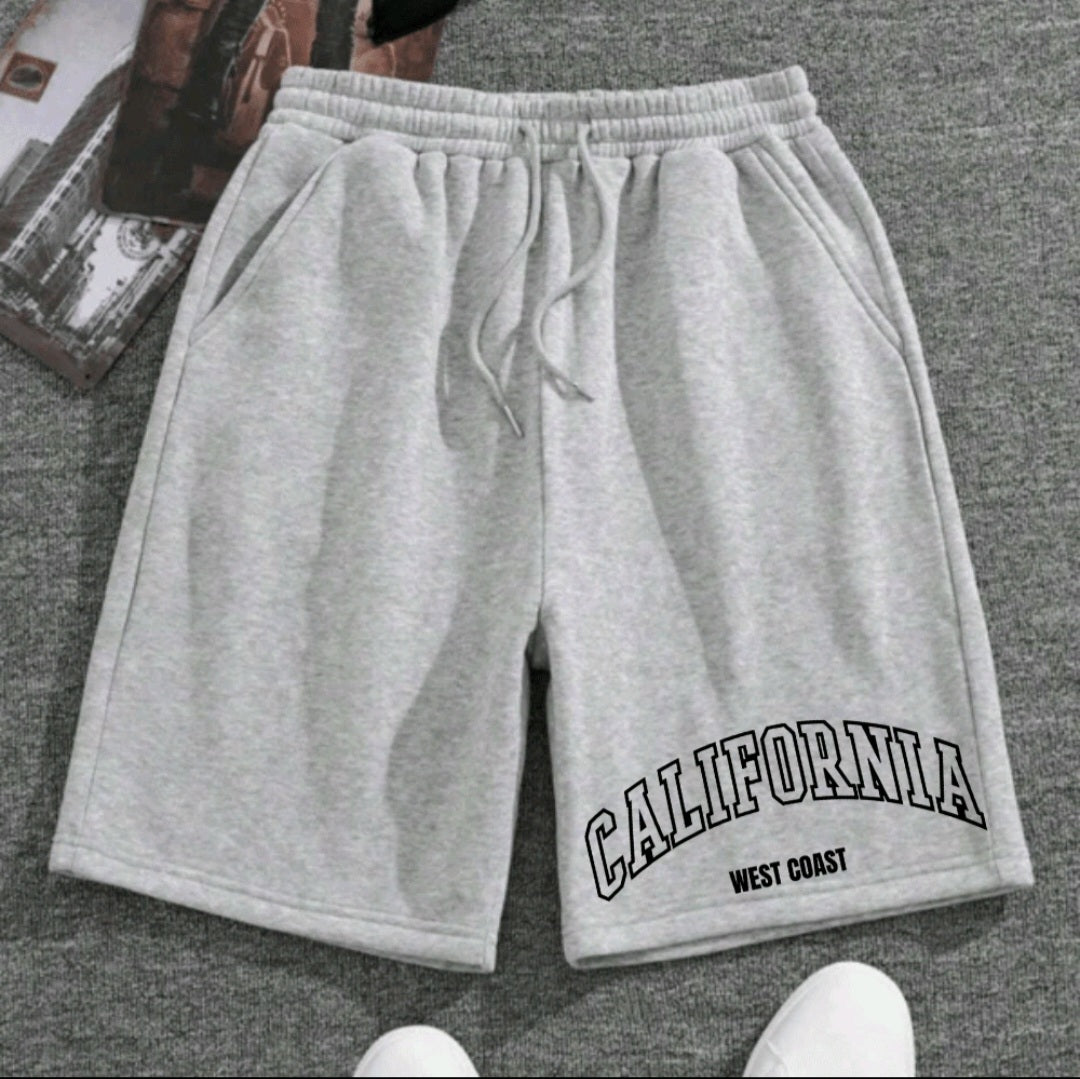 Men's "California West Coast" Sweat ShortsProduct OverviewThese are men's sweat shorts in black, ideal for a casual and comfortable look. Their design focuses on comfort and a streetwear or athleisure style, perfect for everyday wear, leisure time, or light physical activities.Features and DetailsColor: Solid black.Material: Sweat fabric (apparently flannel or midweight), which provides softness and comfort.Design: Cut at or slightly above the knee, with a straighter, looser fit, ensuring freedom of movement.Waistband: Elastic with drawstring (in white or black) for a personalized and secure fit.Pockets: Features deep side pockets, convenient for storing small items. Print: The front print on the leg stands out, with the text "CALIFORNIA" in a white arc and outline, and the phrase "WEST COAST" below in smaller white letters. This print adds a modern and relaxed touch, reminiscent of the American West Coast style.Who to Wear and Where to Wear ItIt's a versatile piece that pairs well with t-shirts, tank tops, and sweatshirts. It's excellent for:Relaxing at home.Casual outings.Going to the gym or playing sports.Creating a comfortable urban look.